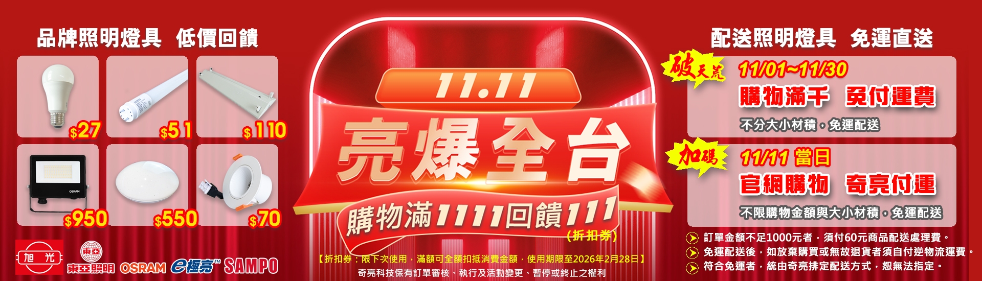 1. 11/1~11/30 消費滿1000元,不分材積免運費
