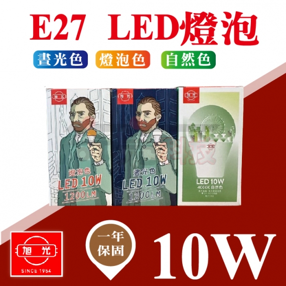 【旭光品牌月】旭光E27 10W LED球泡 全電壓 (白光 黃光 自然光)X10