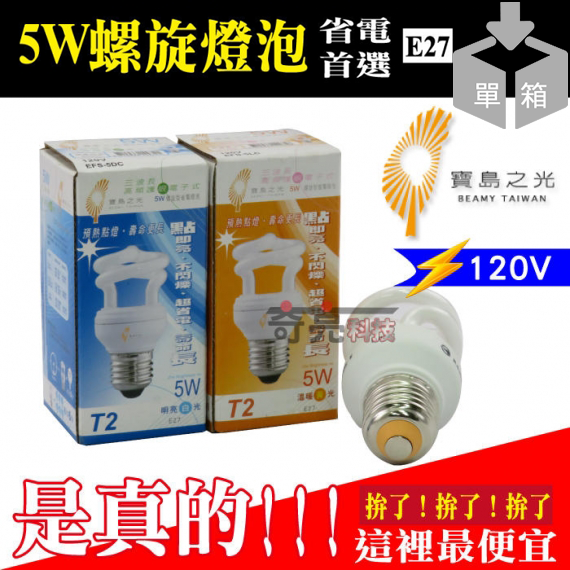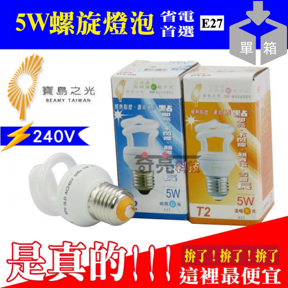 [ 寶島之光 ] 5W E27 220V 螺旋燈泡 省電燈泡 注意電壓