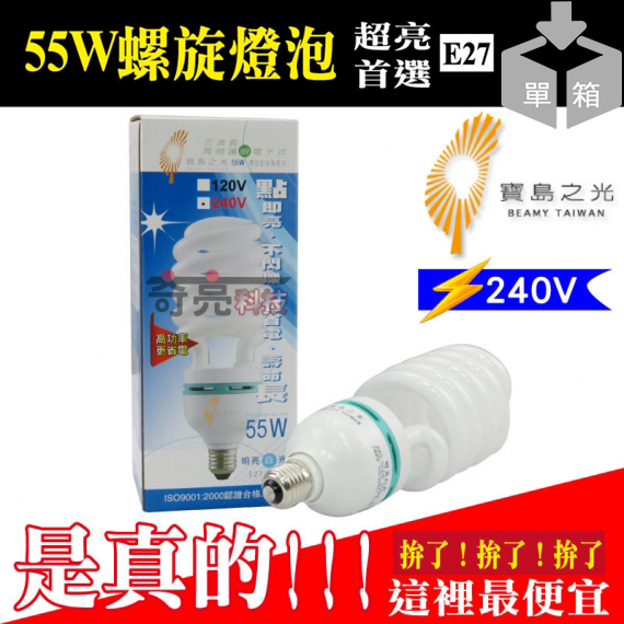 [ 寶島之光 ] 55W E27 220V 螺旋燈泡 省電燈泡 注意電壓