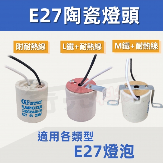 【奇亮科技】附發票 E27 陶瓷燈頭 E27燈頭 E27燈座 附耐熱線 L鐵 吸頂燈座 吊...