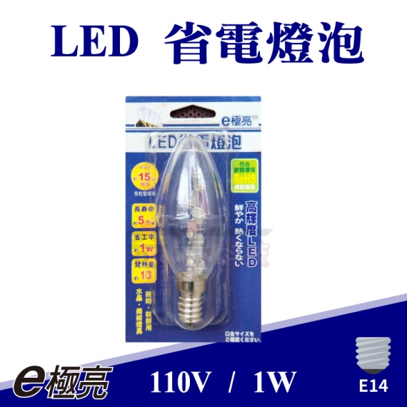 【E極亮】 LED 尖清 LED燈泡 1W 110V E14 黃光 蠟燭燈 水晶吊燈 ...