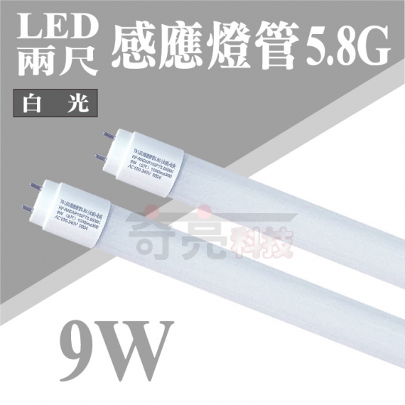 T8 LED 2尺 9W 微波感應 感應燈管 5.8G 白光 全亮全滅 人體 人車感應 玻...