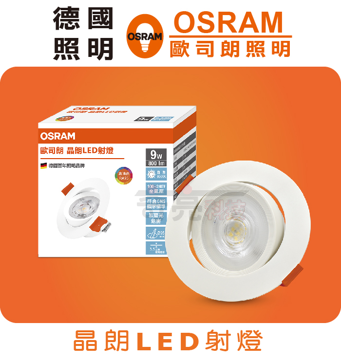 《 歐司朗 晶朗LED射燈 95mm 9W 》