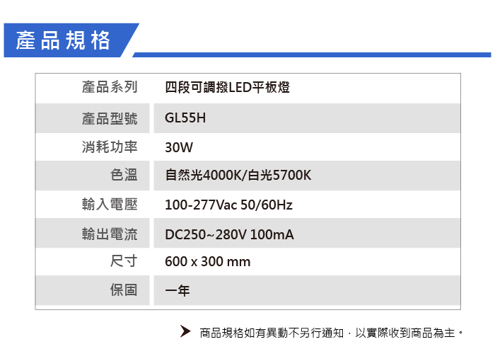 | 產品系列: | 四段調光 平板燈 |