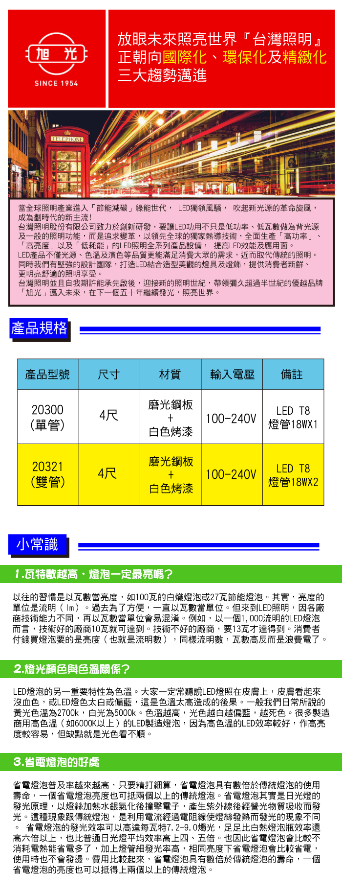 [ 旭光 ] 4尺1燈 工事燈 附全電壓旭光LED T8 20W燈管*1+烤漆反射片