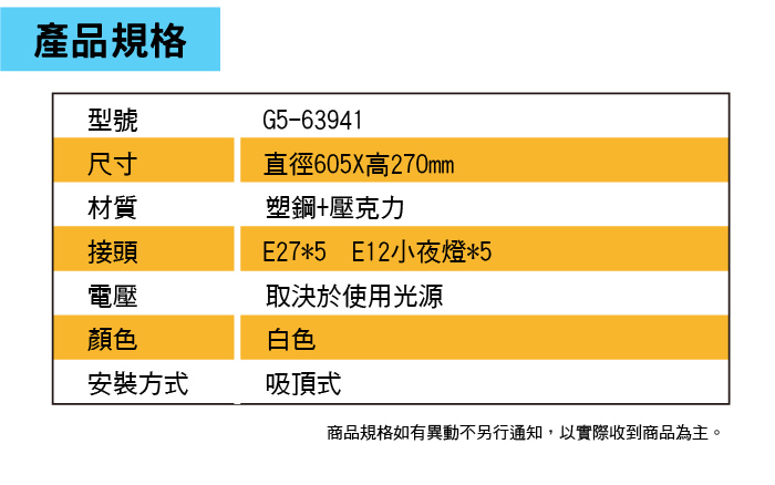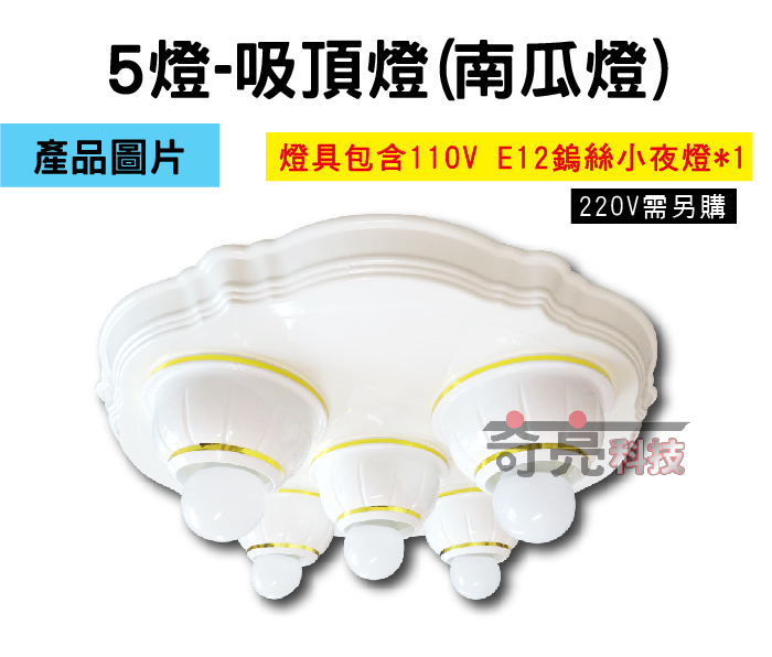 【奇亮科技】含稅 5燈吸頂燈 附小夜燈+10W LED燈泡5顆 E27南瓜燈 吸頂燈具 工廠直營批發價