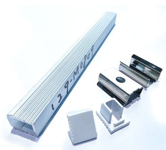 【商品名稱】LED燈條專用細長鋁槽支架(燈條另計) 【商品型號】129-M0809 【商品規格】需求長度(最長3 m) × 7.8 × 9 mm 【內置空間】寬度 5.6 mm 【商品內容】鋁槽支架x1、霧面燈罩x1、邊蓋x2、固定夾x2 【商品特點】鋁製硬槽保護燈條,散熱效果佳、外型美觀、防塵防水 【商品用途】商業空間照明、廣告招牌照明、室內櫥櫃照明 【配送方式】