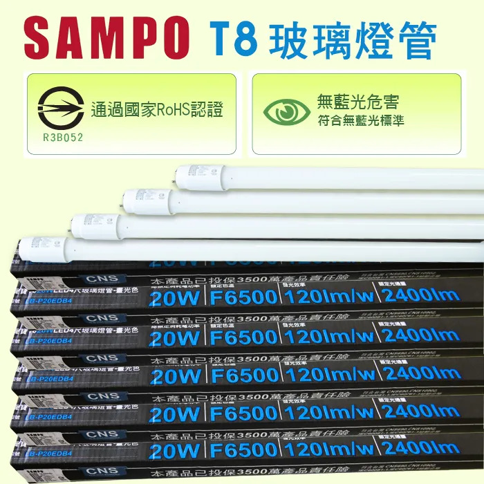 【聲寶 SAMPO】T8 20W 4尺燈管 全電壓 X20入(企業)
