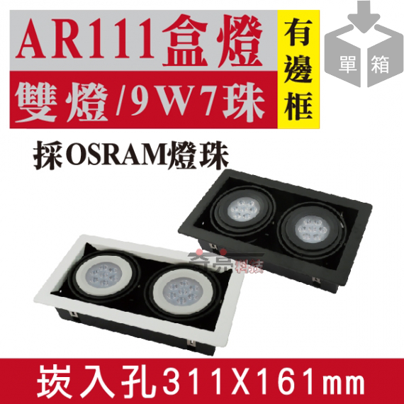 [ E極亮 ] AR111 LED 9W7珠*2燈 崁孔31X16公分 採歐司朗燈珠 有邊框 方型崁燈 盒燈