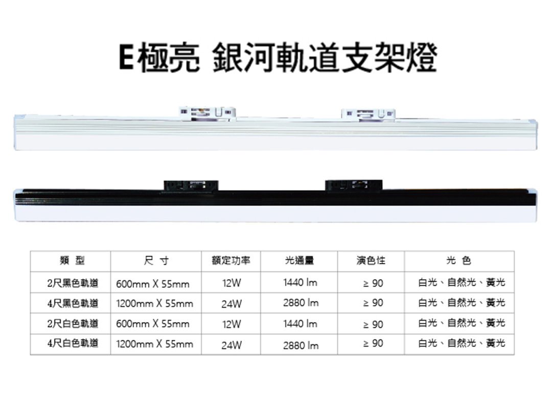 【E極亮】2尺 12W 銀河 軌道 支架燈 黑座 白座 3光色 白光 黃光 自然光