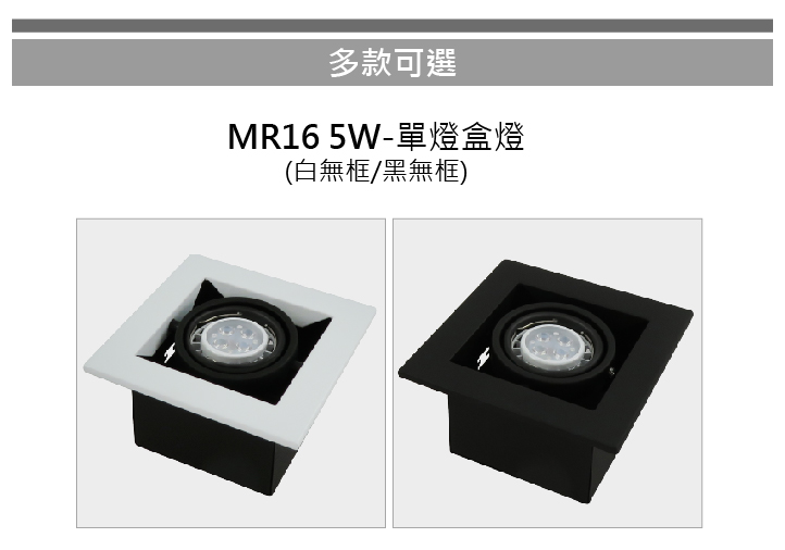 【E極亮】 MR16 LED 5W 《LED有邊框盒燈》 【E極亮】 MR16 LED 有邊框方型崁燈盒燈, 是5W LED 採用仿科技感有邊框設計, 為各式空間營造流暢俐落的照明氛圍。 燈體具可調式角度設計,靈活掌控光線方向, 能依空間需求與裝潢風格自由調整,完美融合室內外各式情境。